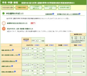 税務署を確認したら、つぎは納期と支払いの種類をえらびます。