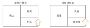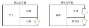 まず、利益が増えるとどうなるか…を、損益計算書と貸借対照表において確認しましょう。
