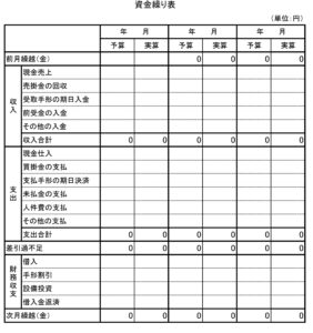 この資金繰り表は、融資の申し込みなどで「将来のお金の動きはどうなりそうか」を示すためにつかわれるのが一般的です。